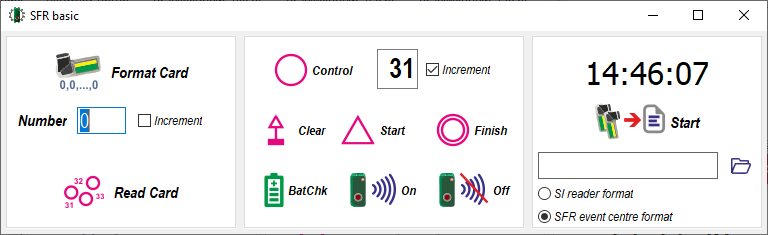 SFR basic is a configuration utility for SFR base units and cards. The utility also allows you to organize permanent card reading into a file.